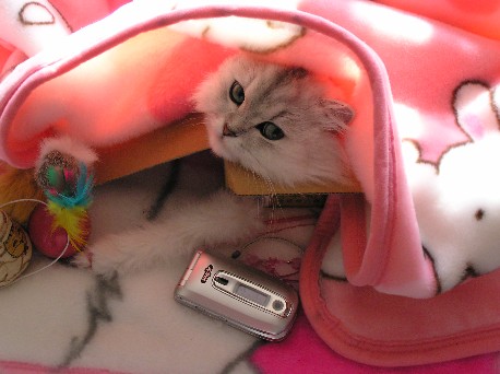 かくれんぼ終わった後、あいちゃんお気に入り箱にて寝てた写真。 起こすなよって顔してます(*´∀`)ゲラゲラ モコモコかけるとゴロゴロいってすぐ寝る子です♪ 周りにオモチャが散乱してます(笑) 携帯は、私のです。毎日踏まれまくり(苦笑) 因みにこの時は、FOMAのF2102Vです。