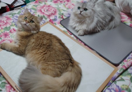 なかなか二人共上を向いてくれないので、天井にオモチャをぶつけて気を惹かせてみましたv