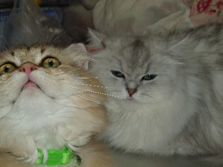 私のベットの上にて3。 ベットの下から撮ってみたら凄いひなちゃんアップ写真撮れました(笑) あいちゃんと違って鼻がピンク(*ノェノ)キャー 後ろのあいちゃんだんだん眠くなって目つき悪いです(*´∀`)ゲラゲラ ひなちゃんの首輪は写ってるけど、あいちゃんは毛が長くてなかなか写りません(苦笑) 今は、ひなちゃん→黄緑。あいちゃん→赤です。