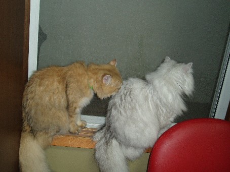 私の机の横にある窓でベランダ見てます。