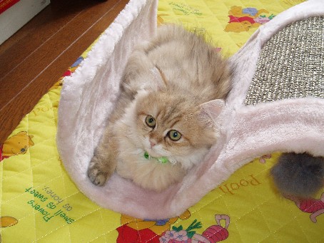 あいちゃんに買ってあげた「ニャンてS字な遊び場」で寝てます。